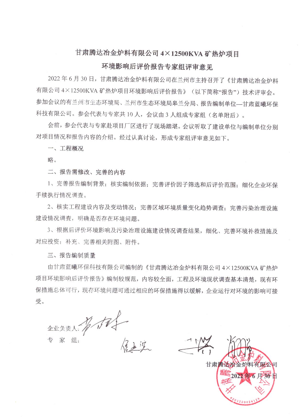 根據(jù)《建設(shè)項(xiàng)目環(huán)境影響后評(píng)價(jià)管理辦法(試行)》的有關(guān)要求,甘肅騰達(dá)冶金爐料有限公司委托甘肅藍(lán)曦環(huán)??萍加邢薰揪幹仆瓿闪恕陡拭C騰達(dá)冶金爐料有限公司4×12500KVA礦熱爐項(xiàng)目環(huán)境影響后評(píng)價(jià)》并通過(guò)審查。